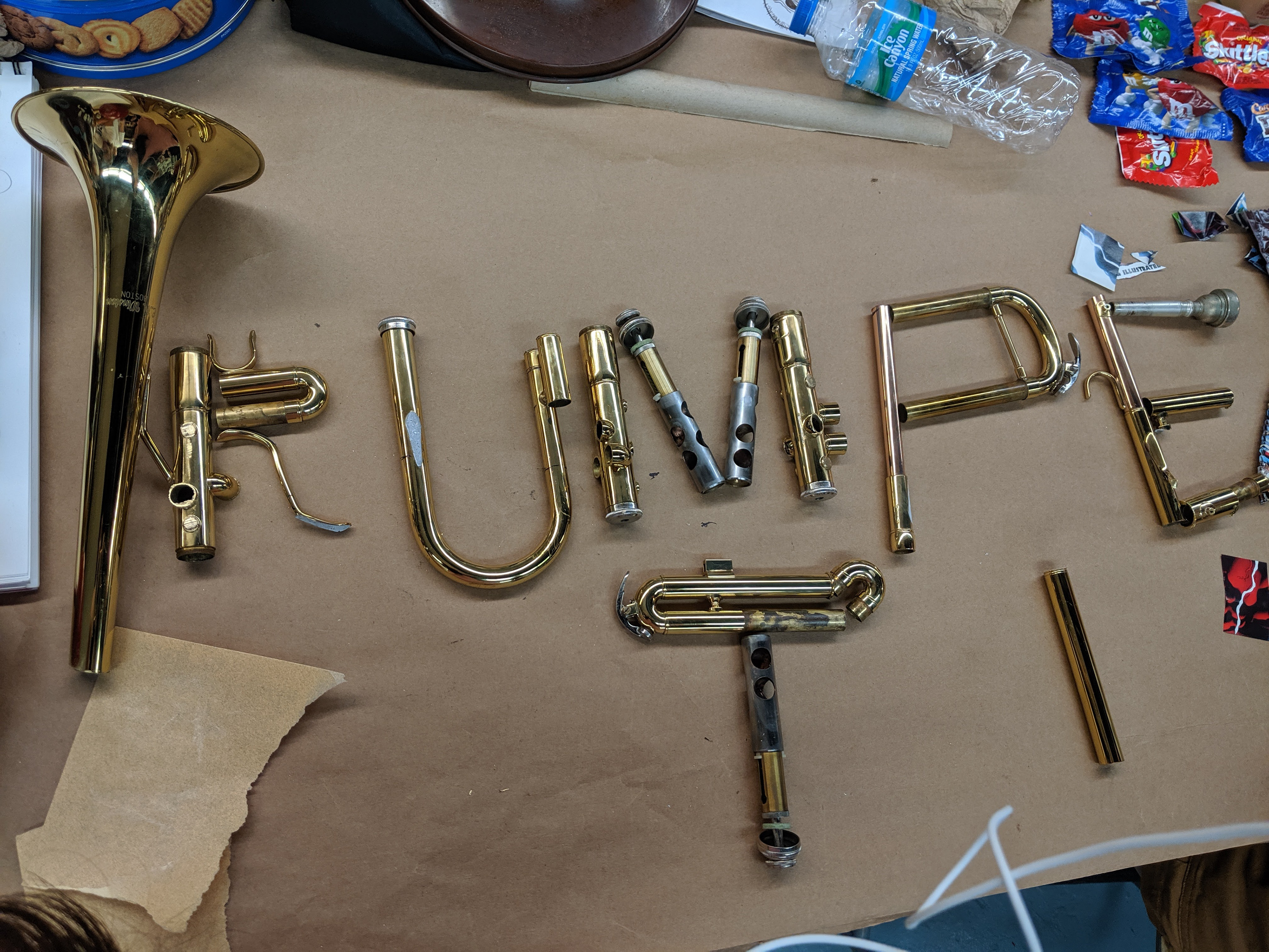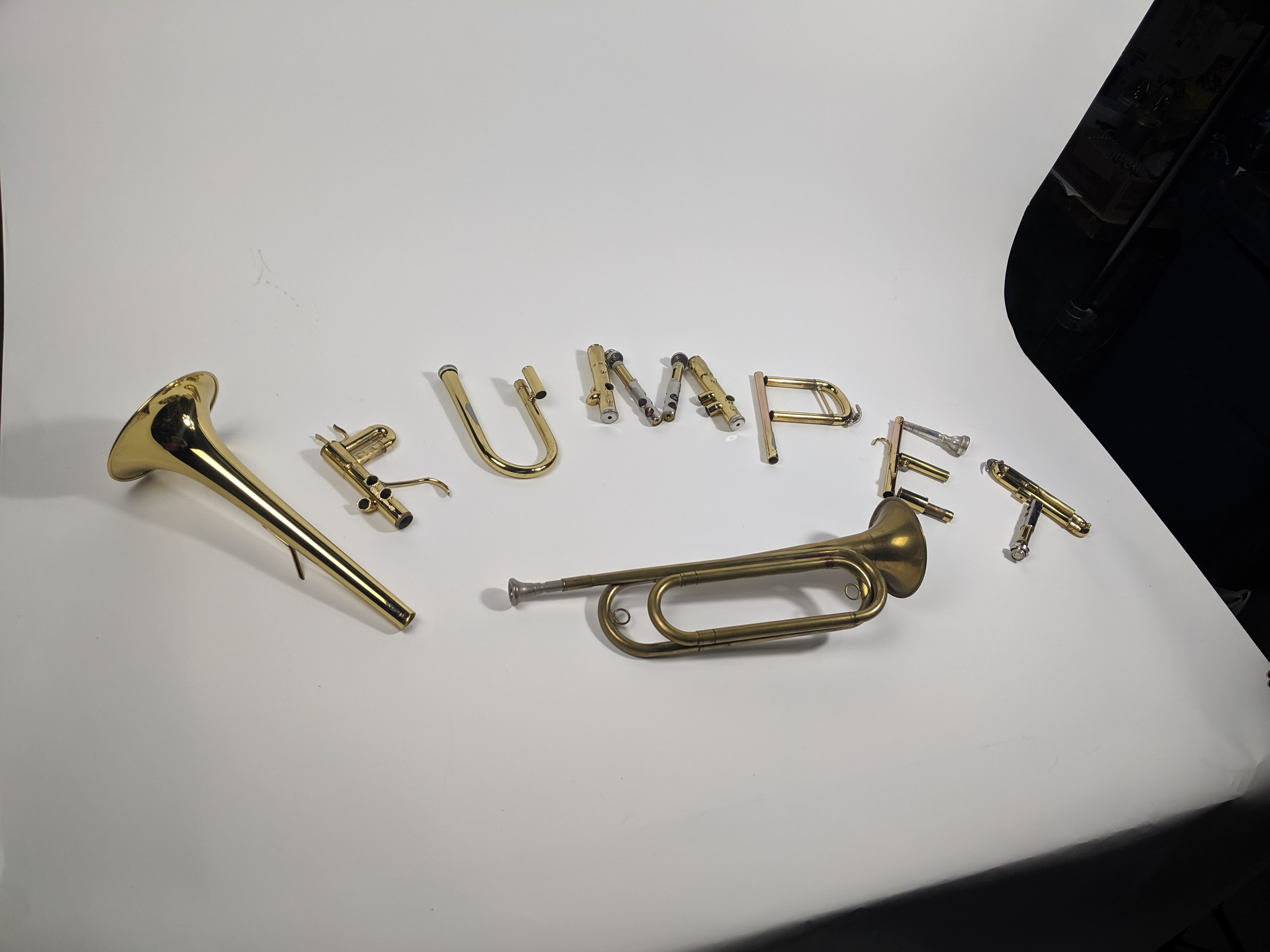A type challenge where the word is representative of the object. I deconstructed a trumpet, took images and next brought it into Photoshop.